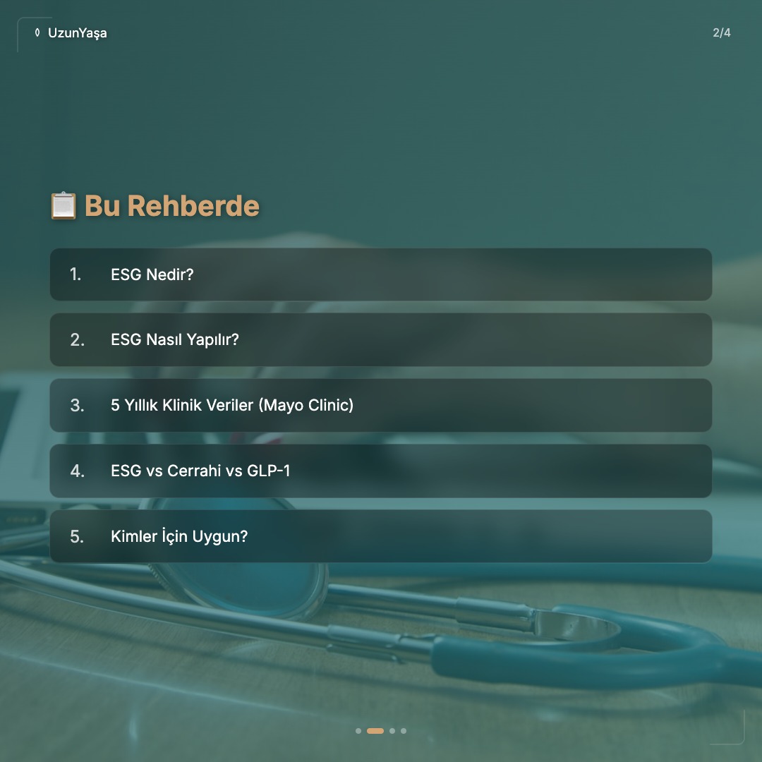 Ameliyatsız mide küçültme: ESG nasıl yapılır, ne kadar kilo verdirir, riskleri neler? 5 yıllık veriler, iyileşme süreci ve Türkiye'de erişim bilgileri.